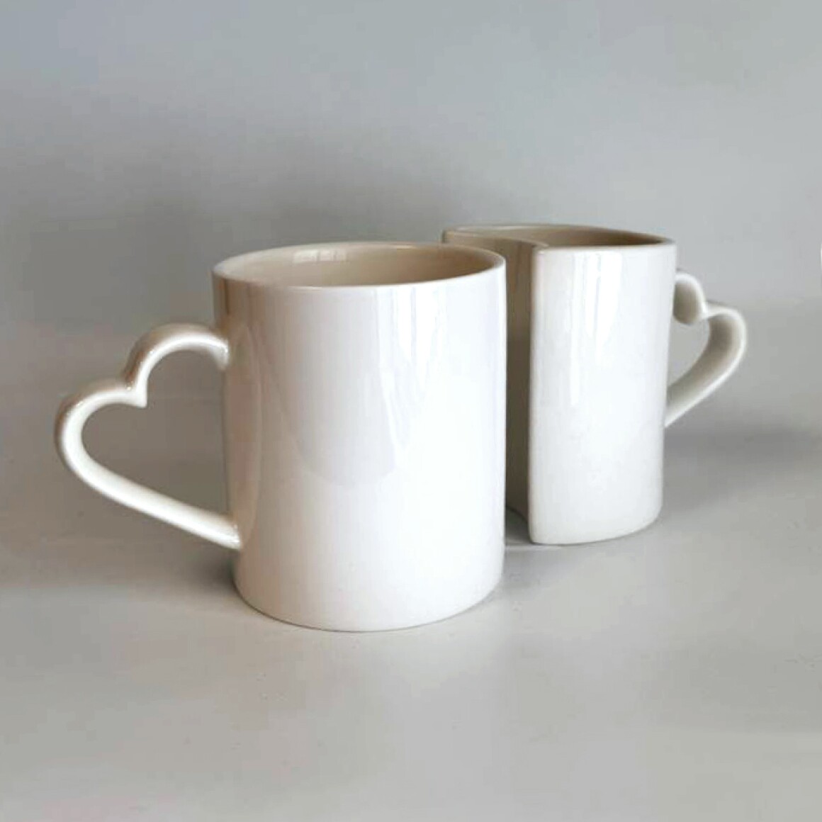Кружки с ручкой сердечком, парная кружка сердечко белая для печати изображений